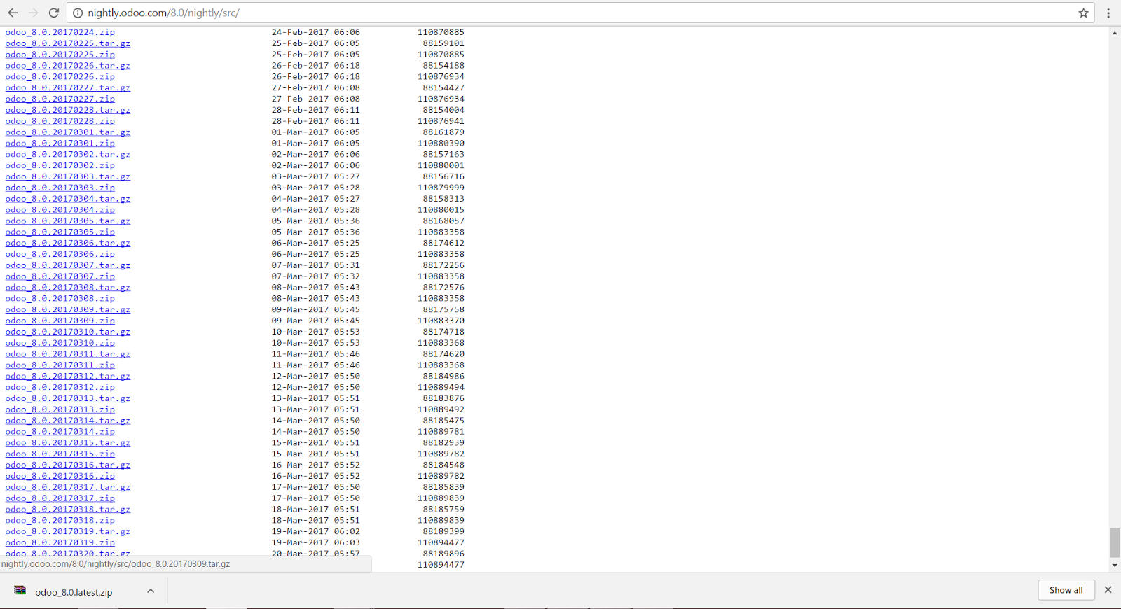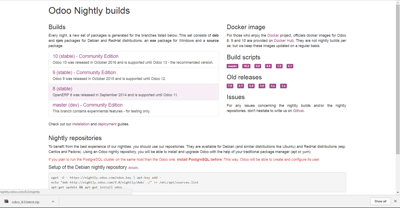 | Ini tampilan link webnya pilih Odoo 8.0 |