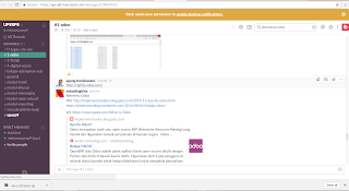 | Pertama gue cari link download Odoo System di grup Slack dengan topik #Odoo |