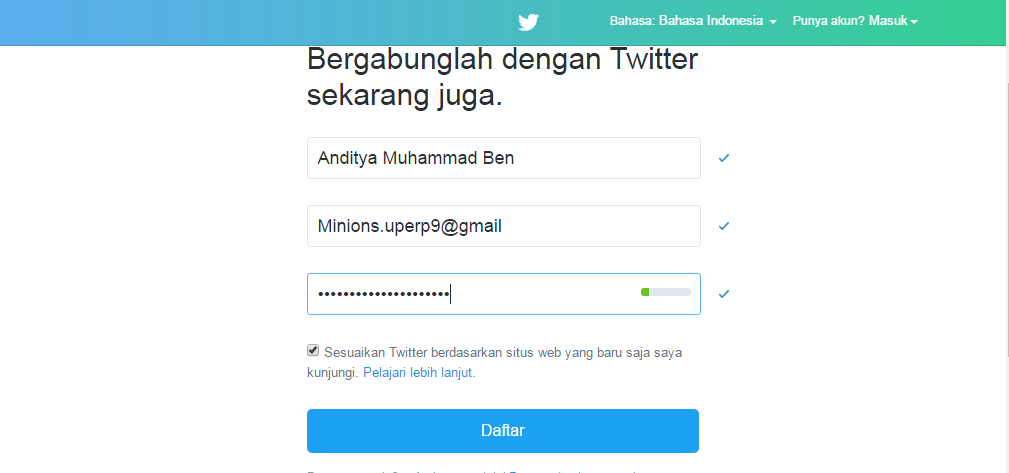 Lalu gue membuat twitter baru untuk belajar via twitter, dikarenakan akan adanya kultwitt atau kita sebut kuliah twitter (Canggih kan........ UP gituuuuuu wahahahahahahahaha)