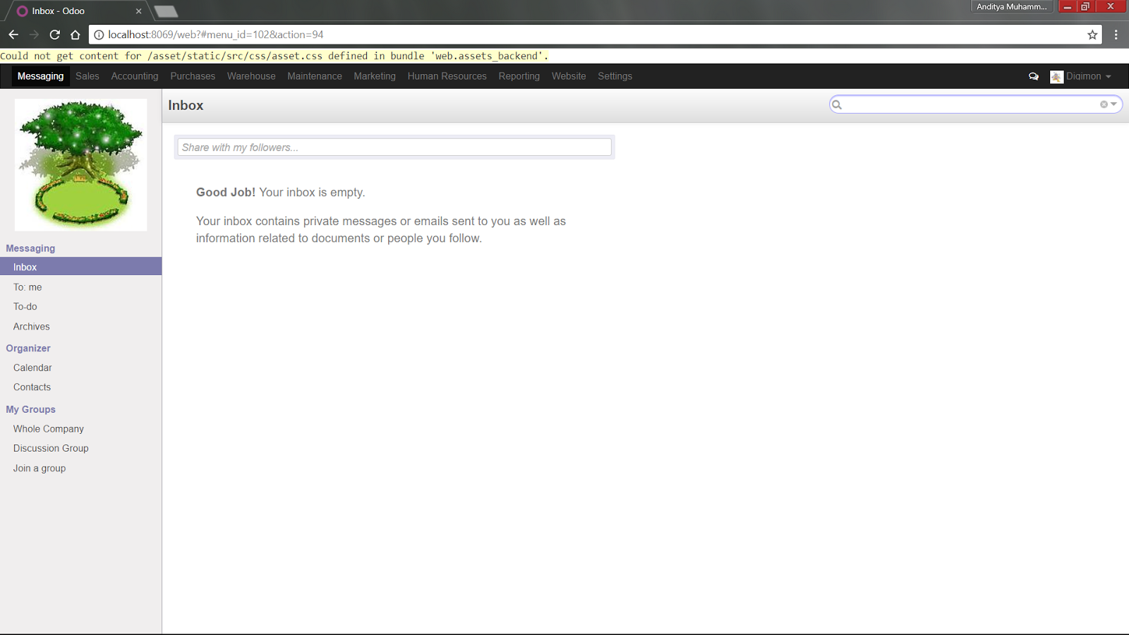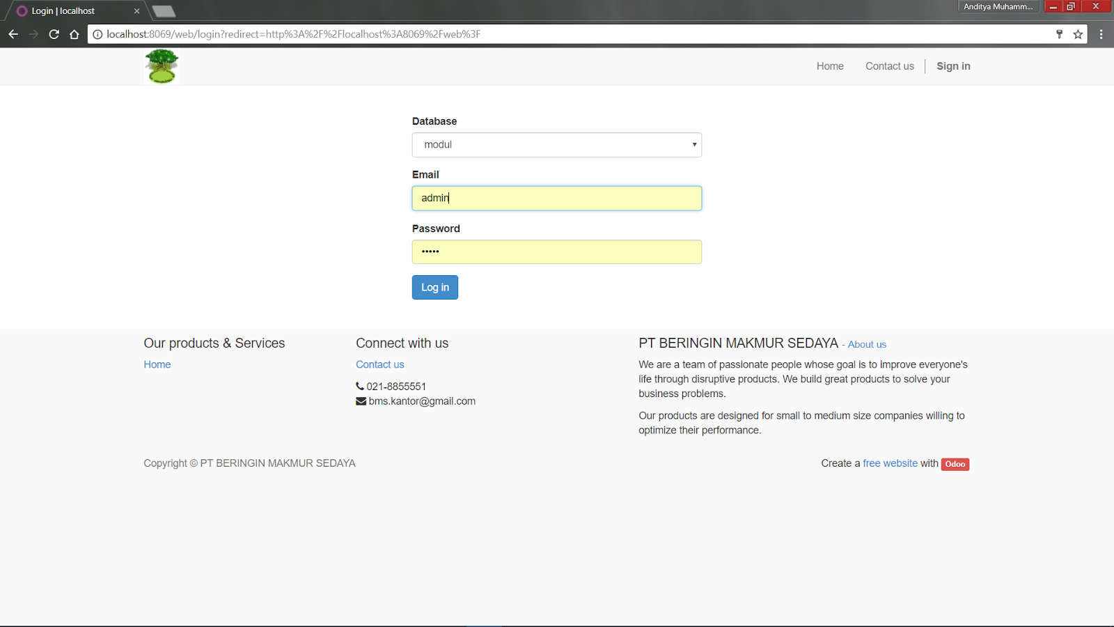 | Setelah berhasil di restore login kembail kedalam Odoo |