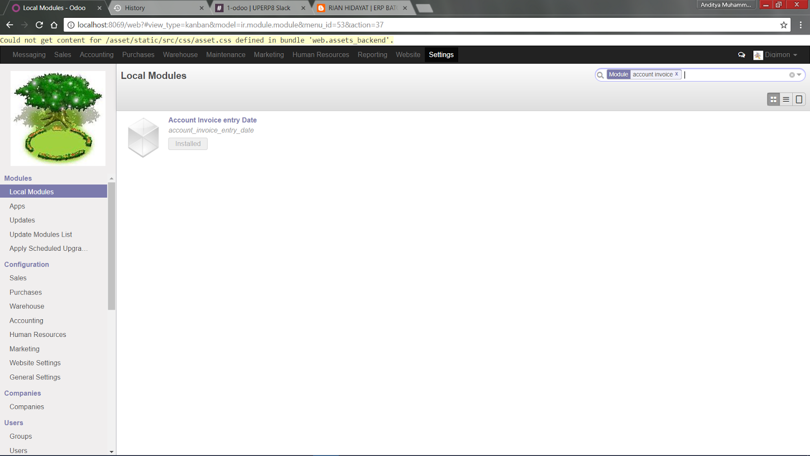 | Search di local modul oh iya di kotak pencarian appsnya di klik "x" dulu yaa abis itu search modul yang mau kita Instal, lalu jalankan penginstalan |