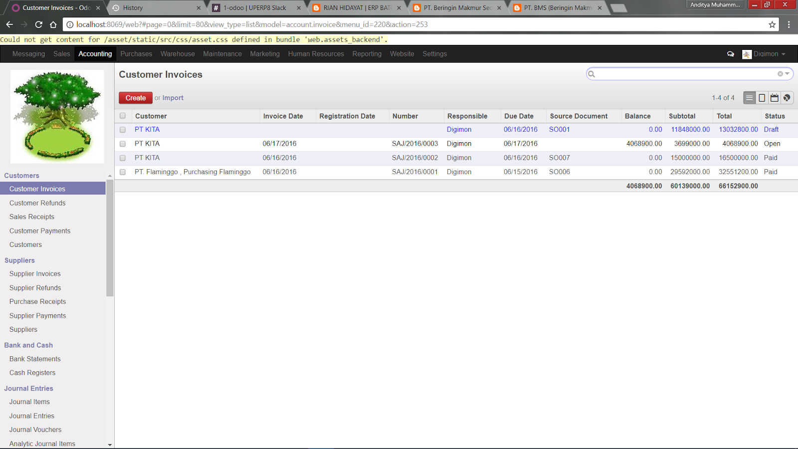 | Nah ini dia perbedaan dari sebelum dan sesudah modul di instal adalah pada saat di menu accounting ada Invoice date, Number, Responsible, Balance, dan status dari setiap pemesanan |