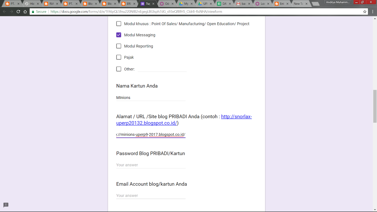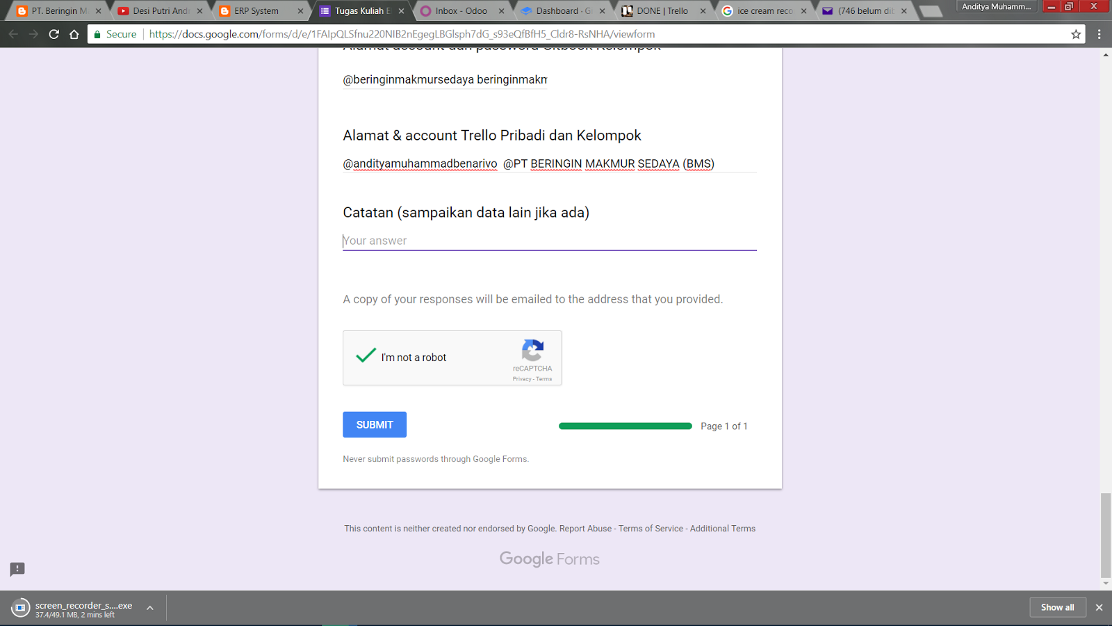 Hallooo kali ini gue akan membahas tentang pengisian kuisioner yang diberikan oleh dosen ERP, kuisioner sebagian besar berisikan tentang data akun dari Trello, Gitbook, dan link video youtube