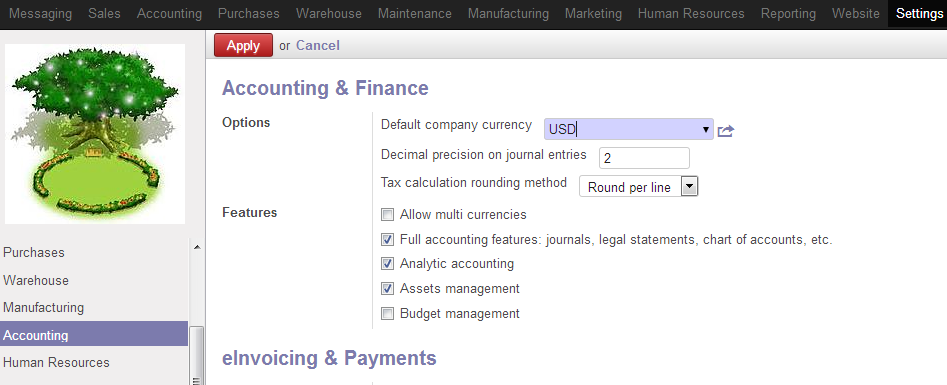 Currency atau mata uang dapat diubah untuk kepentingan perusahaan. Pada odoo, dapat di atur currency yang akan dipergunakan. Kali ini, PT BMS mempunyai setting currency IDR dan akan diubah menjadi USD