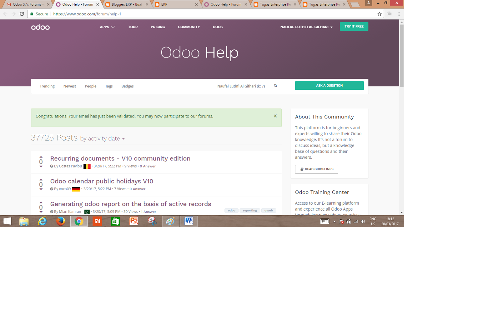 kali ini saya akan membuat akun odoo di www.odoo.com serta bergabung dan bertanya di forum odoo internasional.
