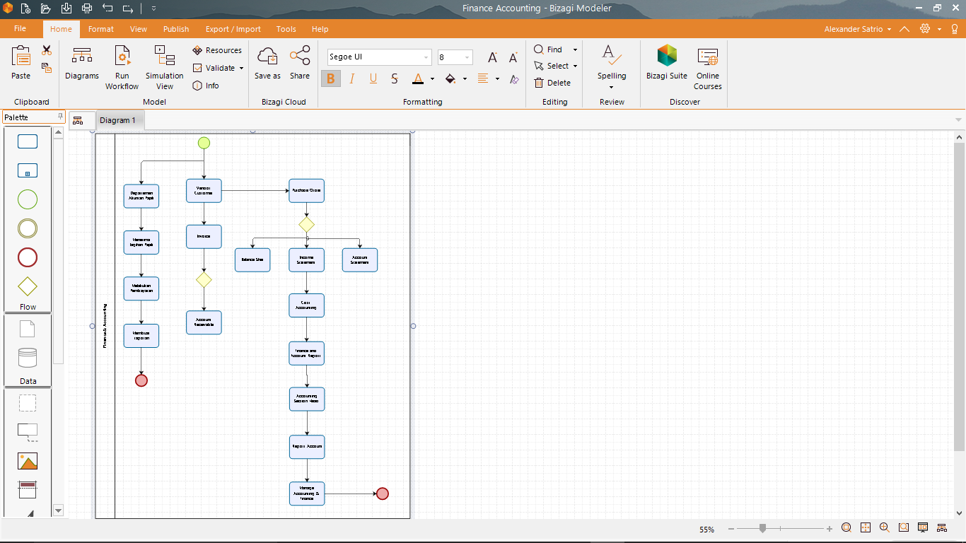 Dan sekarang saya akan memberikan contoh bisnis proses finance accounting yang telah saya buat dengan software ini, maka hasilnya seperti ini