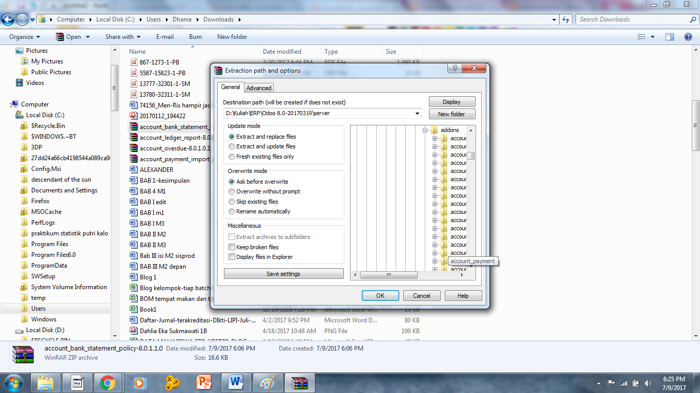 - Ekstrak file tersebut pada folder add ons di dalam folder odoo