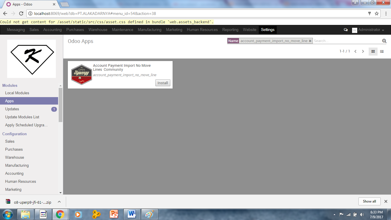 Kali ini saya akan menjelaskan bagaimana cara install add ons sesuai modul yang didapat, dan kebetulan saya mendapat modul accounting finance. Untuk mempersingkat waktu mari kita simak langkahnya di bawah ini :