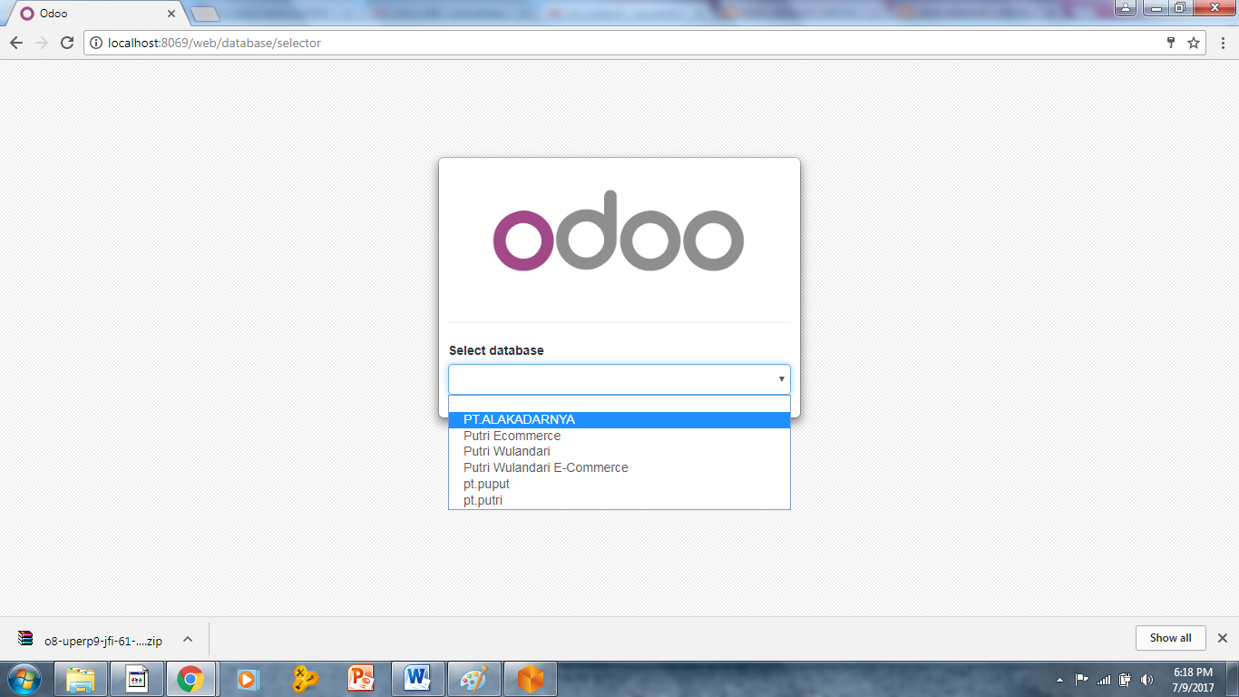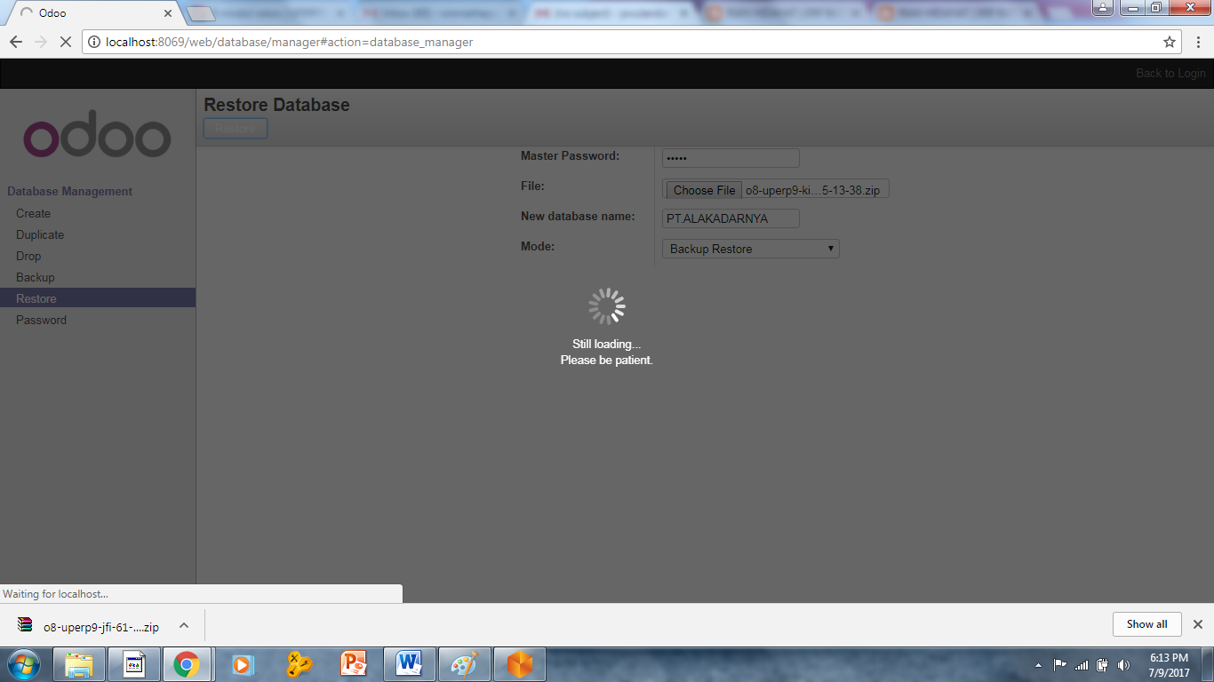 - Membuka odoo dan melakukan restore dari database masing masing PT dan membuat nama database baru