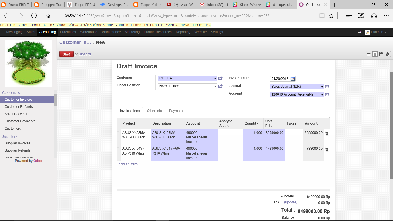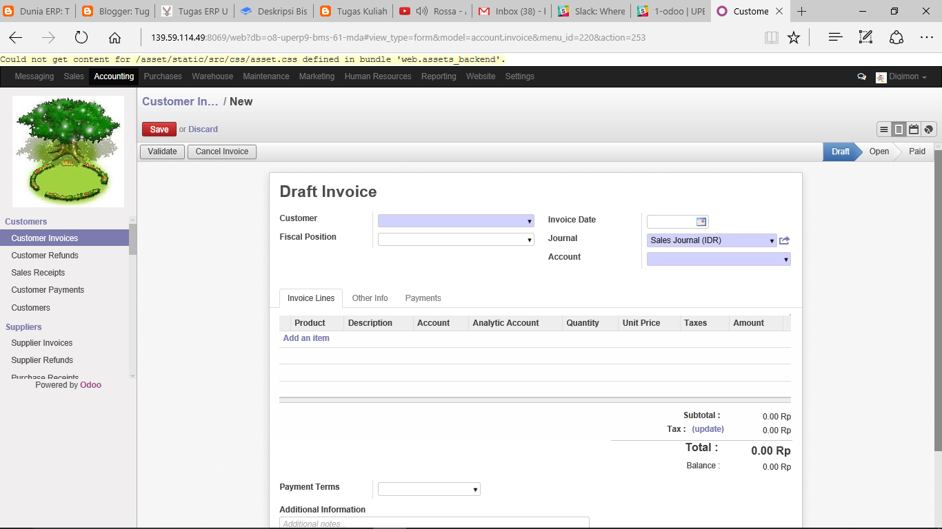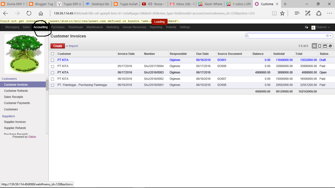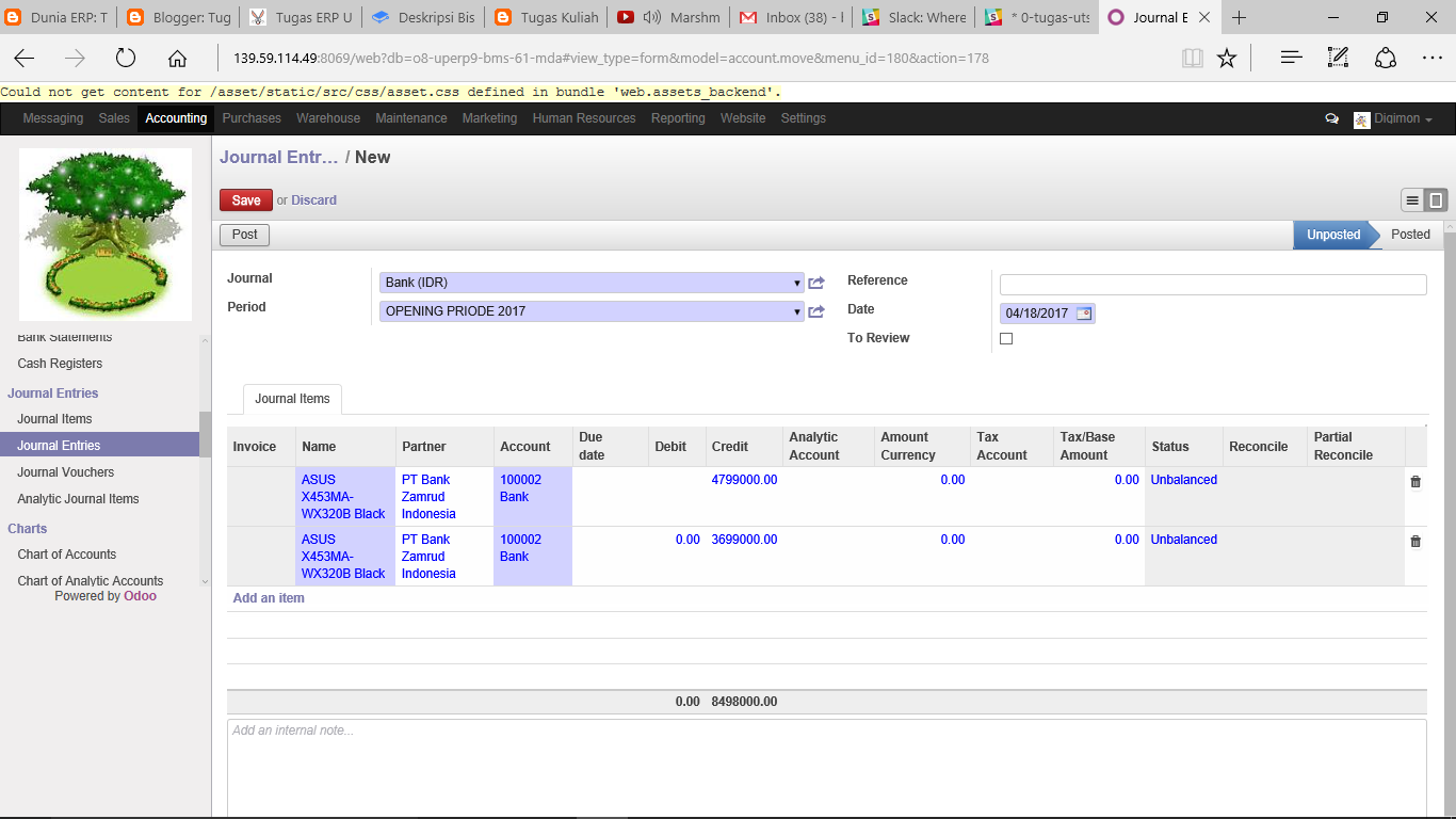Demikian fungsi Accounting di server Odoo PT BMS