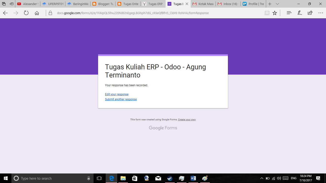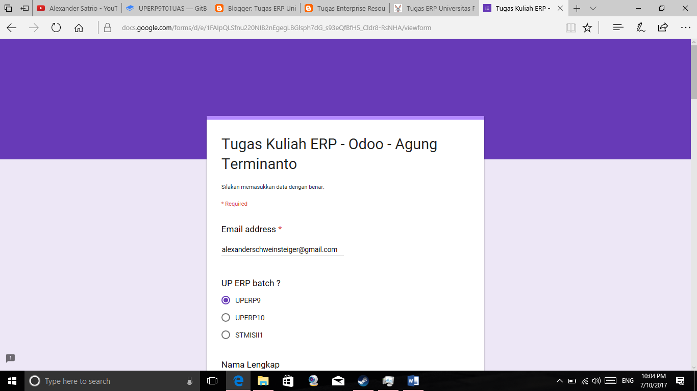 Kali ini saya akan memberikan bukti bahwasaya telah mengisi form, berikut langkah awal dan akhir pengisian form :
